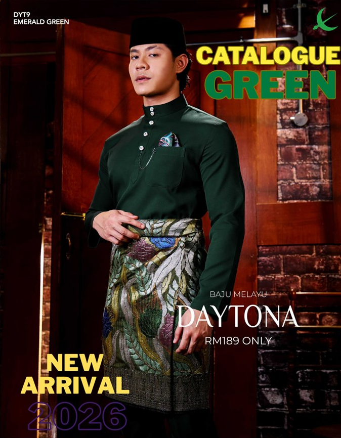 Dengan rekaan terkini yang menggabungkan elemen tradisional dan moden, Baju Melayu Lelaki Daytona dalam warna Koleksi Green adalah pilihan ideal untuk jejaka yang ingin menyerlahkan penampilan mereka pada Raya 2026.